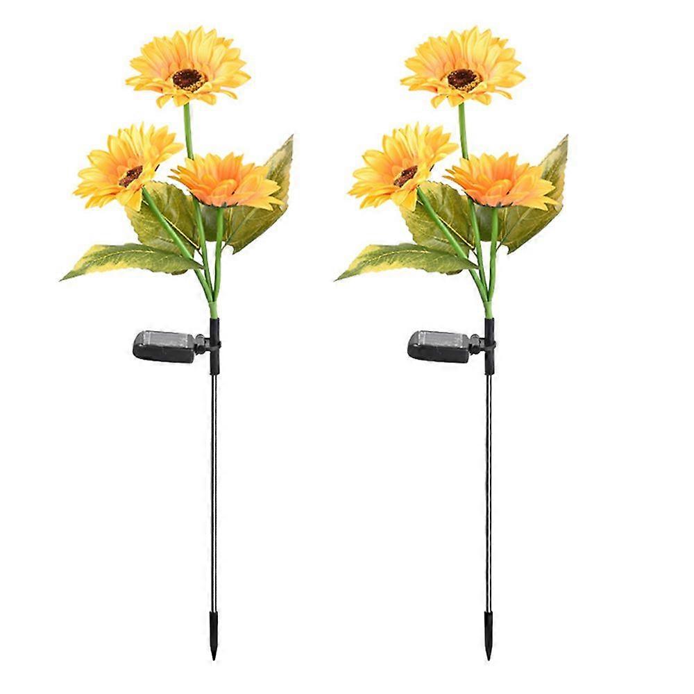 2 Pack Sunflower Solar Lights Outdoor Decor with 3 LED Sunflower Yellow Flower Lights Decorative
