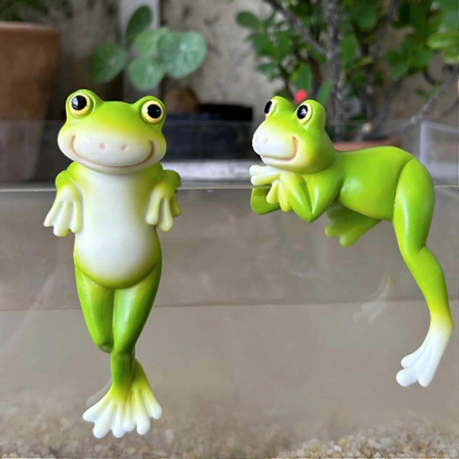 2 Packs Flower Pot Hangers Frog Decorative Figures Frog Decorative Frog Animals Resin Statue Garden Decoration, Green Frog Flower Pot Hanger Figures B