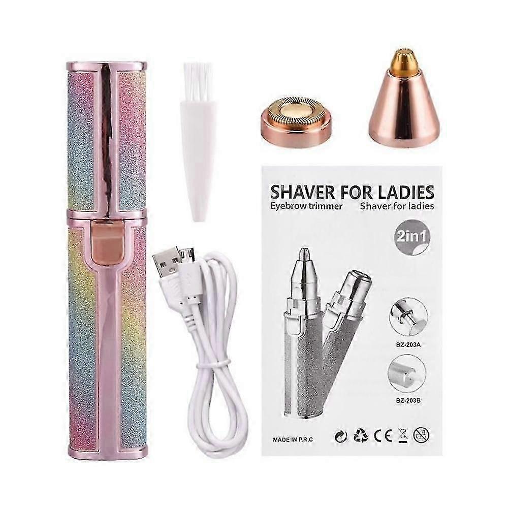 2 in 1 Electric Eyebrow Trimmer, USB Rechargeable Body Facial Hair Removal Mini Epilator Lipstick Shape Women Razor Shaver