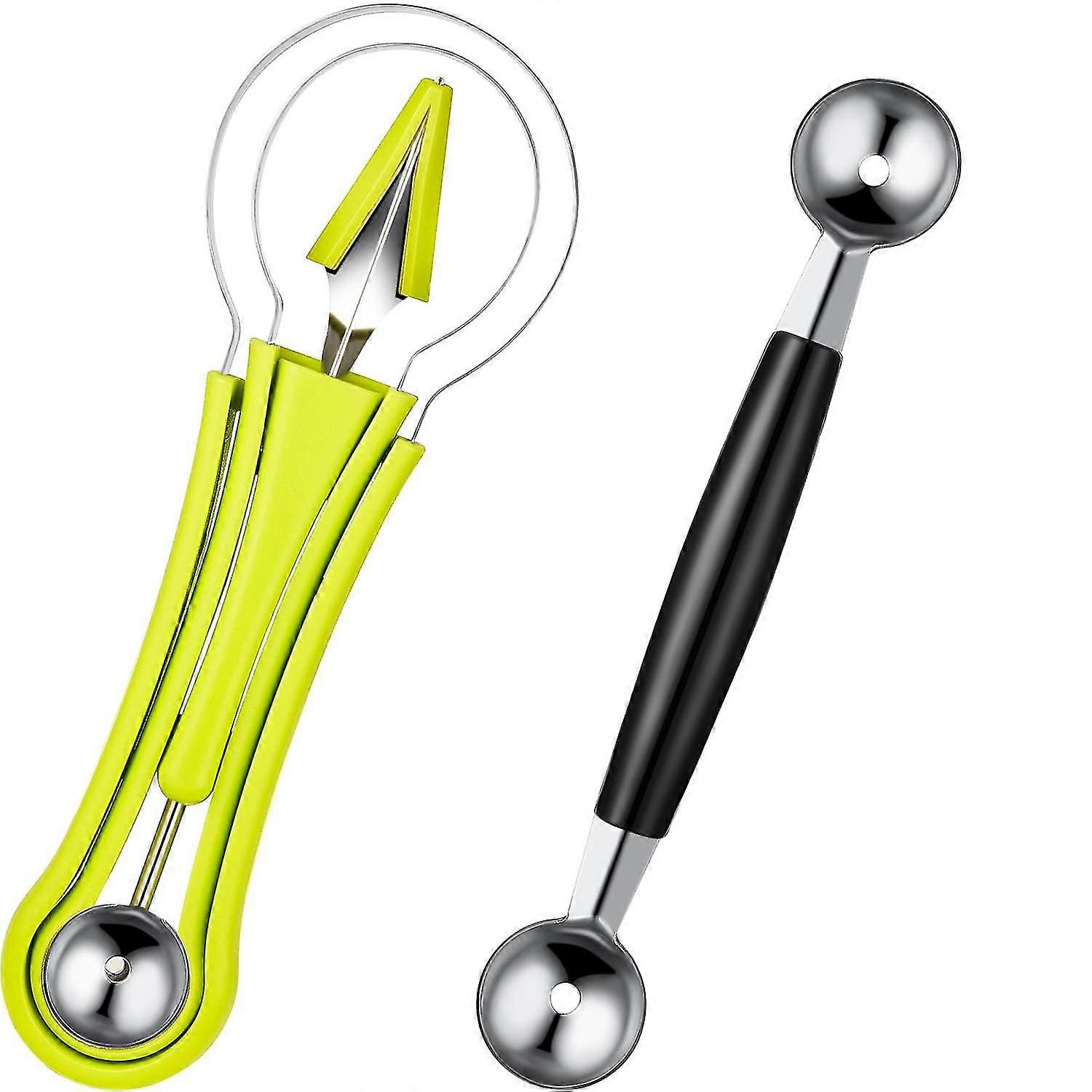 2 Pieces Melon Baller Scoop Set, 4 In 1 Stainless Steel Fruit Scooper Seed Remover Melon Baller Carving Knife Double Sided Melon Baller For Watermelon