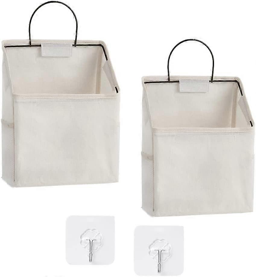2 Pack Wall Hanging Organizer Bag for Bedroom((White)