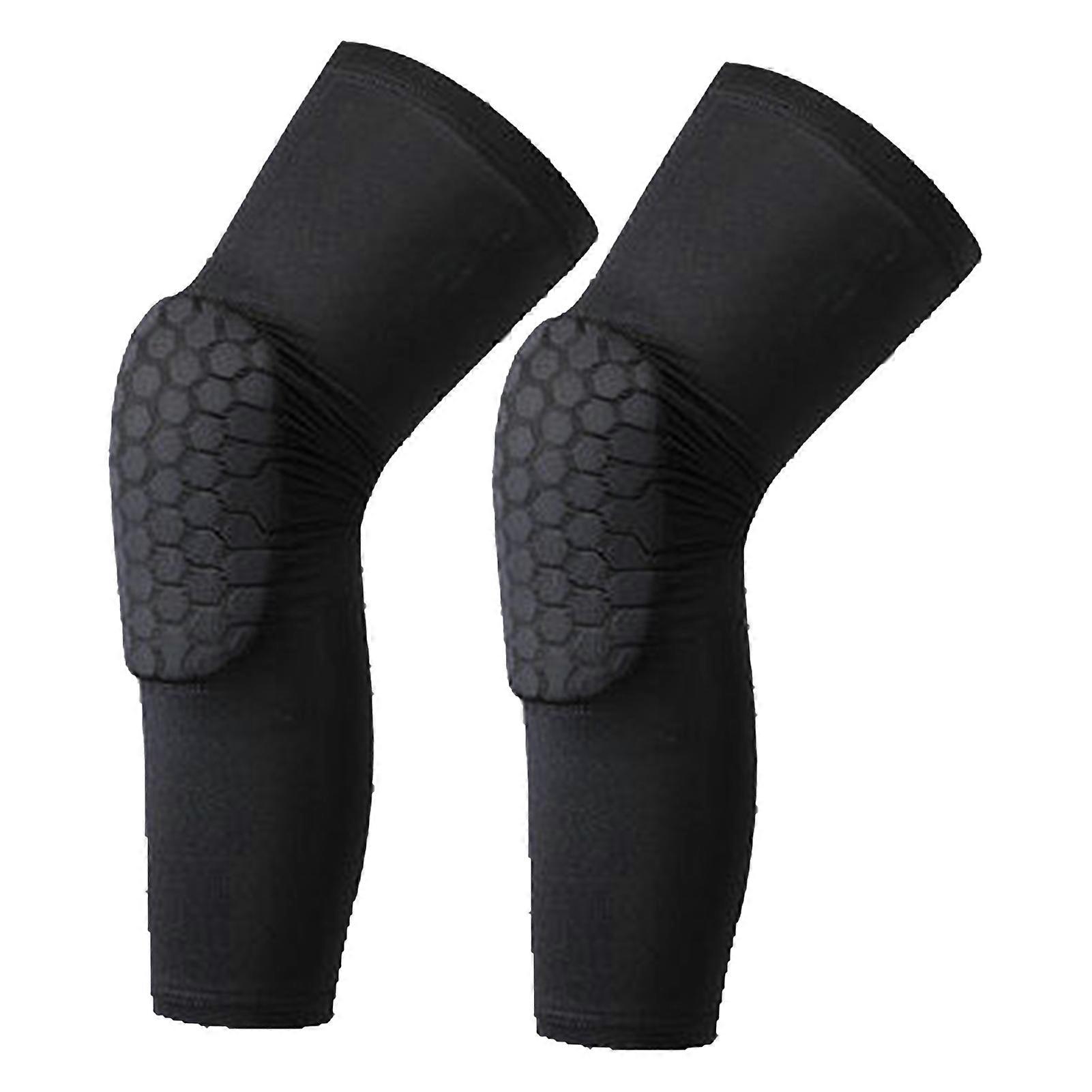2 Pcs Knee Compression Sleeves High Elastic Fast Drying Adults Knee Pads for Outdoor Sports Fitness Running Black L