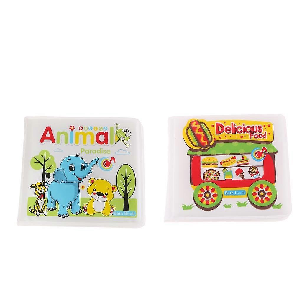 2 Pcs Shower Floating Books Waterproof Alphabet Book Toys Animal / Food