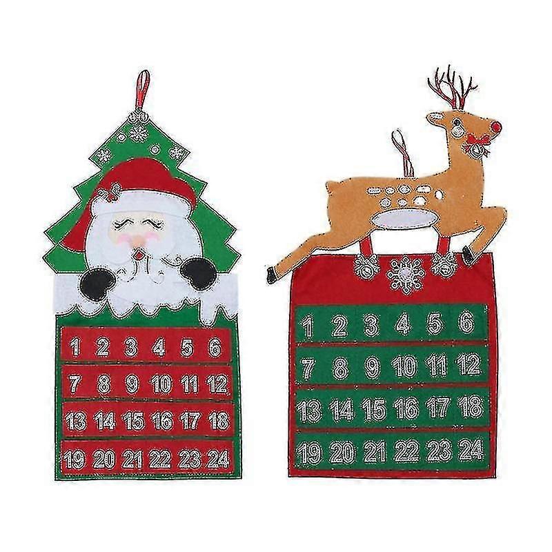 2 Pcs Adorable Countdown Calendar Hanging Pendant Advent Calendar Non-woven Decorations Christmas