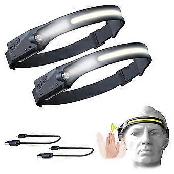 2 Pcs Cob Led 90000lm Headlamp Sensor Headlight Flashlight Usb Rechargeable Head Lamp Torch 5 Modes Work Light
