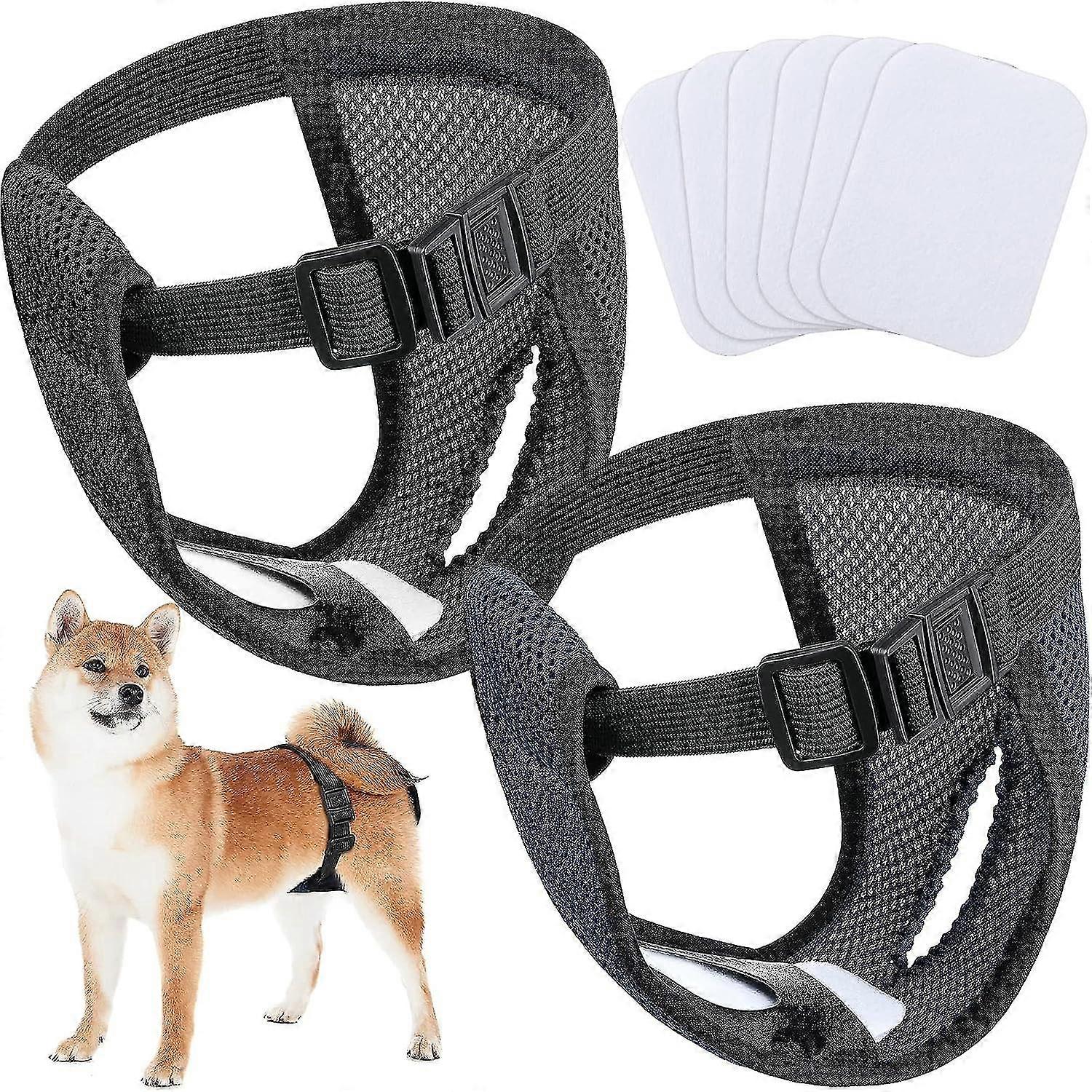 2 Packs Washable Female Dog Diapers Protective Dog Pants With 6 Sanitary Napkins Menstrual Pants For Dog Heat Monthly Bleeding, Black And Blue (l)