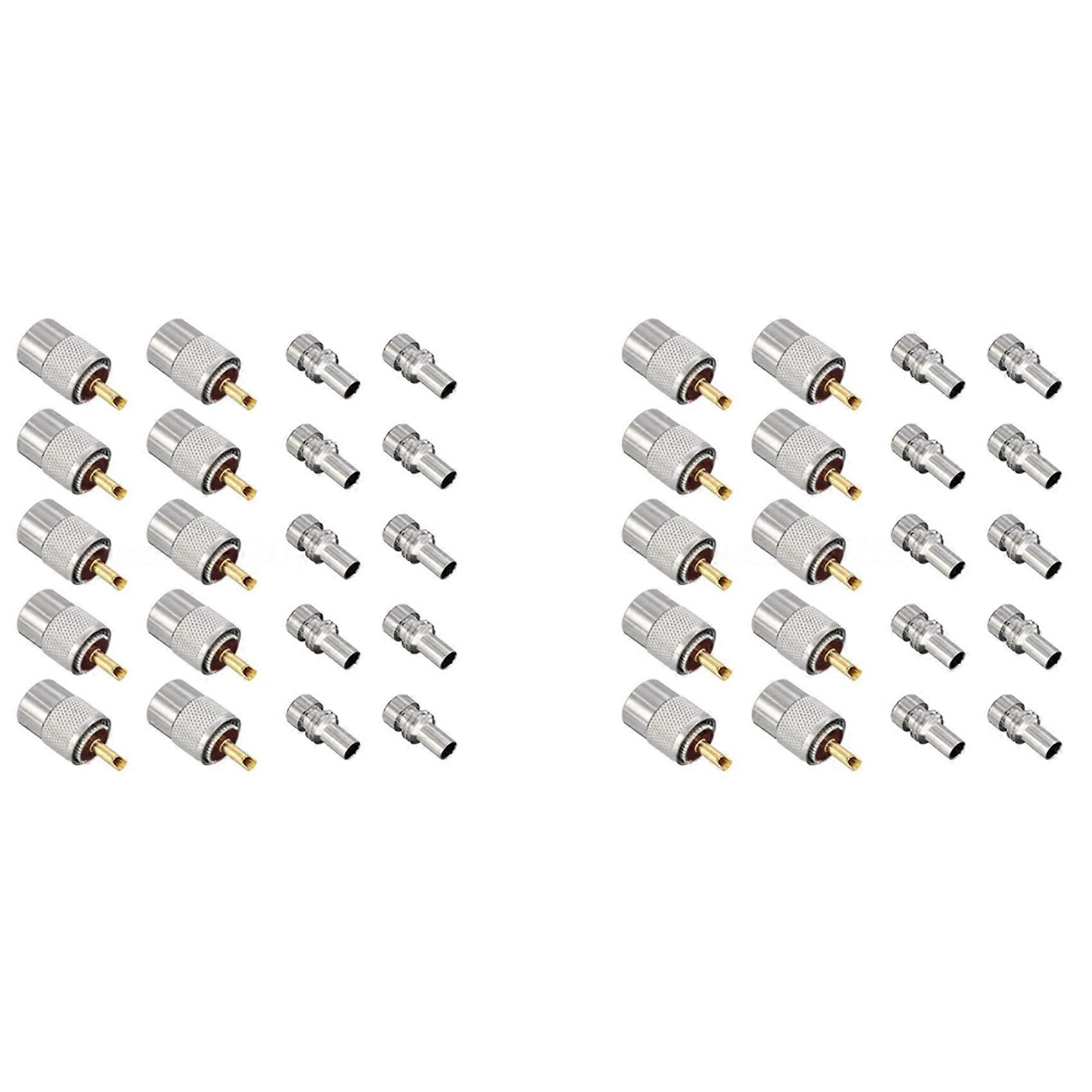 20 Pack UHF/PL-259 Solder Connector Plug with Reducer for RG8X, RG8, RG59, LMR-400, RG-213 Coaxial C