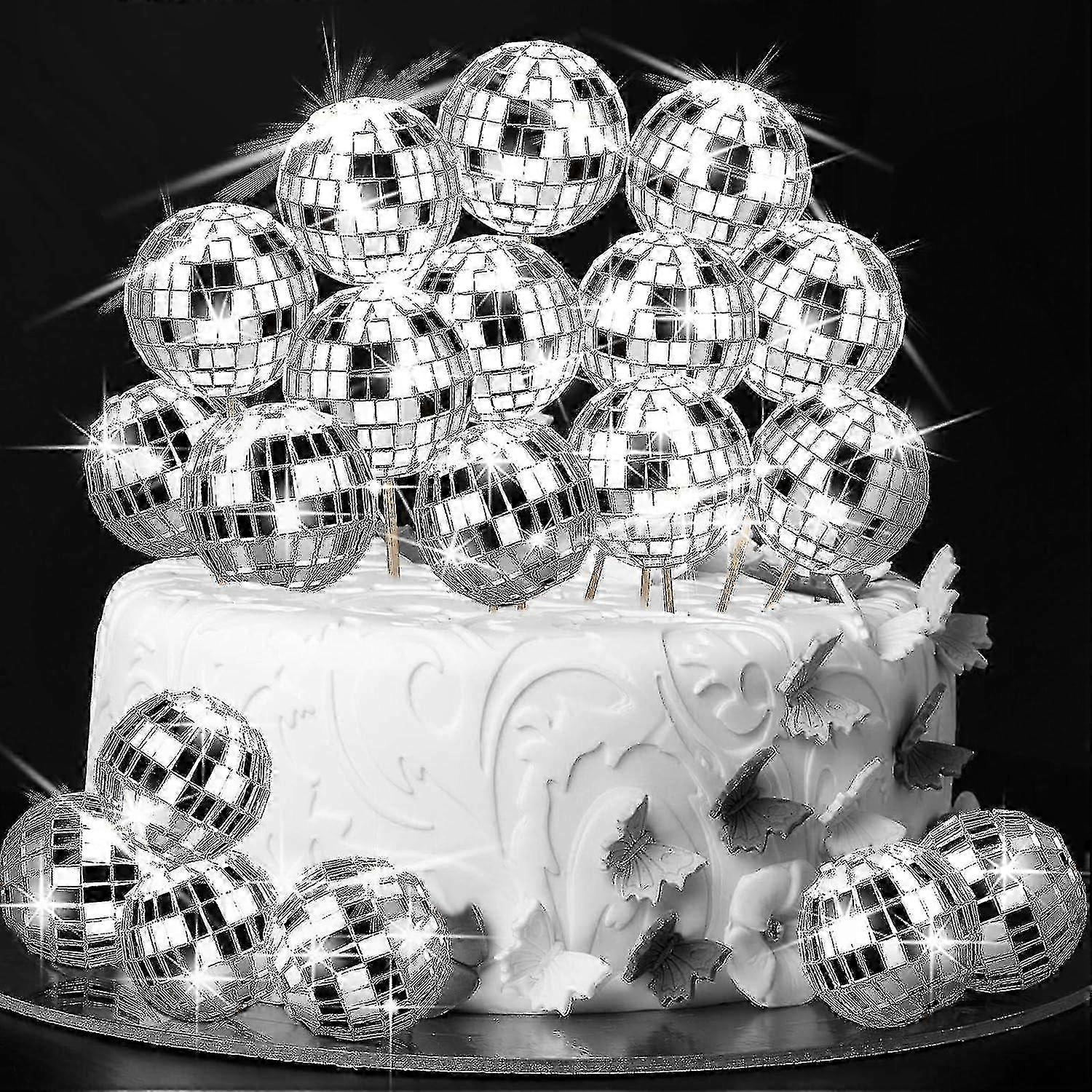20 Pieces Mirror Ball Cake Decorations for Party Theme
