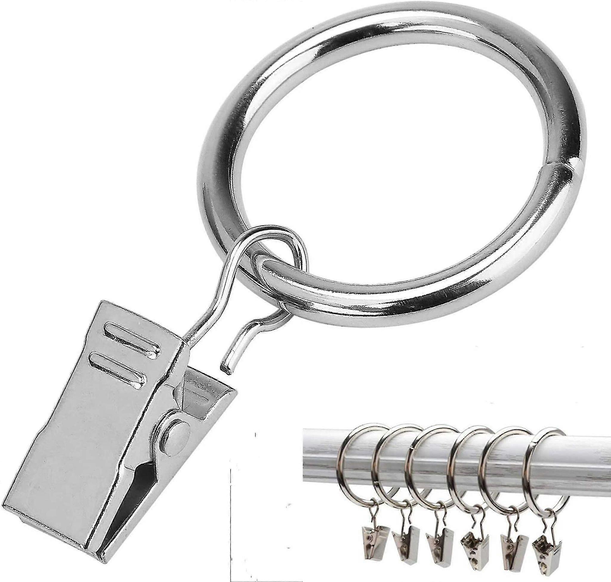 20 Pieces Metal Stainless Steel Curtain Rings With Clips 38mm Curtain Hooks