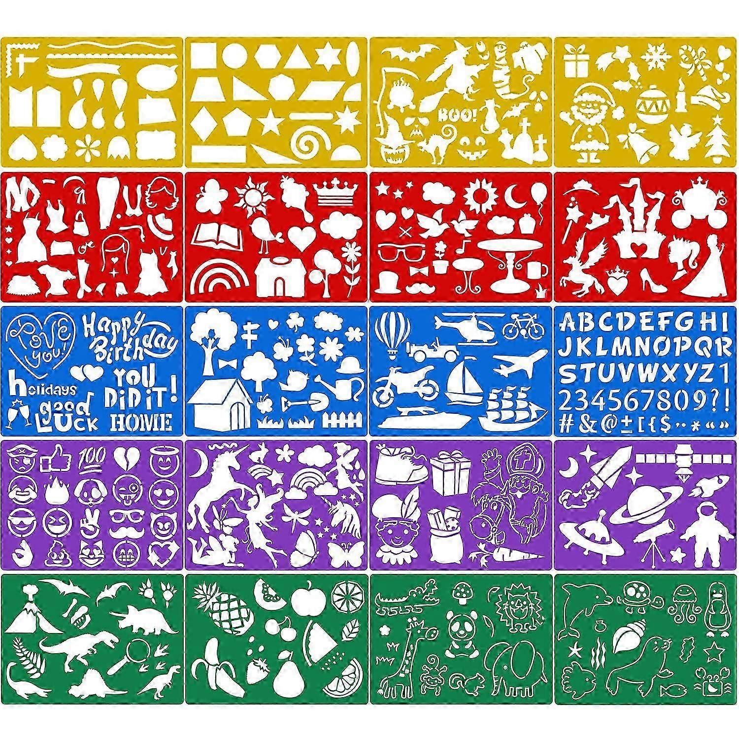 20 Pieces Color Drawing Templates for Kids, Plastic Painting Stencil for Kids Birthday Halloween Christmas Dinosaur Party Gift Supplies Preschool Pain
