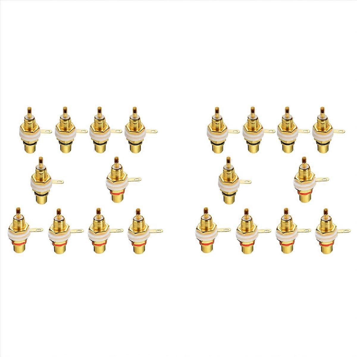 20Pcs Female Jack Plated Connector Gold Panel Mount Chassis Audio Socket Plug Bulkhead with Nut Sold