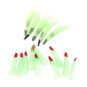 20 Pcs Halloween Witch Fingers Fake Nails Luminous Red and Black Noctilucent Spooky Scary Witches Fingers Party Props Costume Fingers Random Color