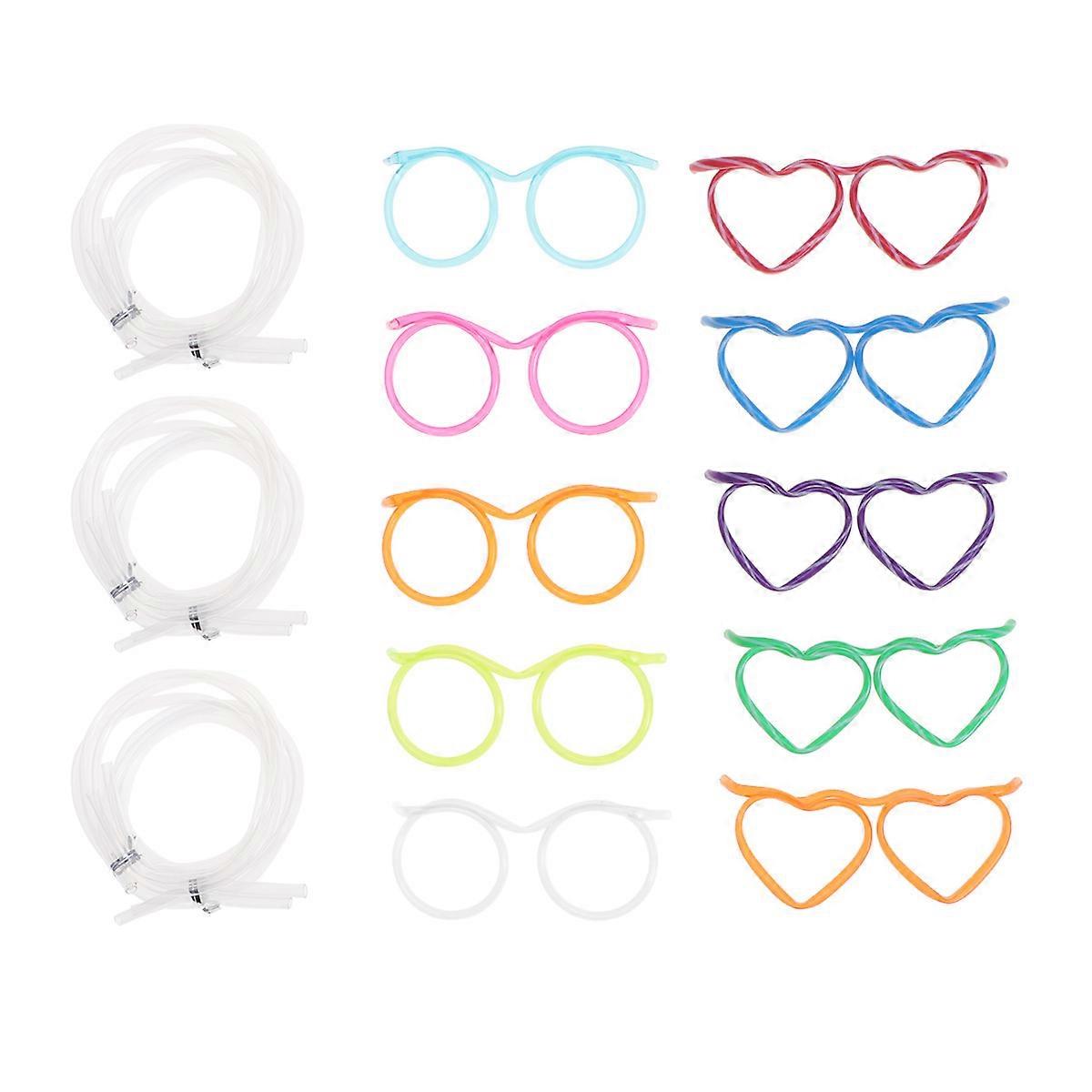 20 Pcs Kids Funny DIY Straws Glasses Straws Unique Flexible Drinking Tubes Crazy Straws for Birthday Party Supplies(Mixed Color)