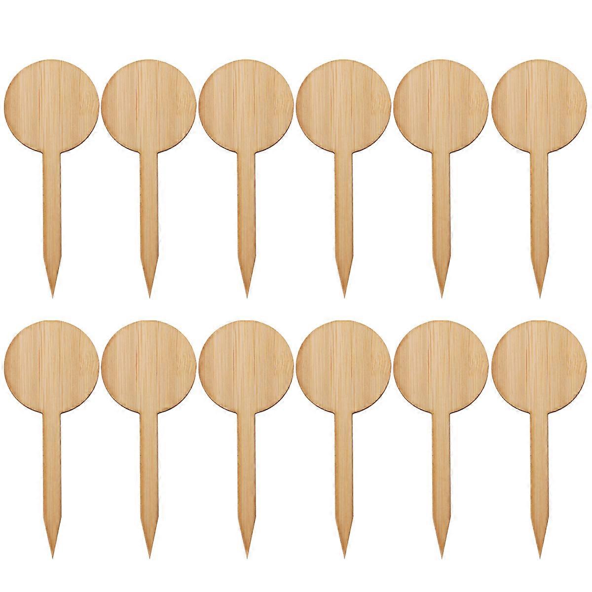 20 Pcs Thicken Bamboo Signpost T Shape Mini Plants Label Plaque Ornaments Miniature Decors Seedling Box Plant Ornaments (Round Style)