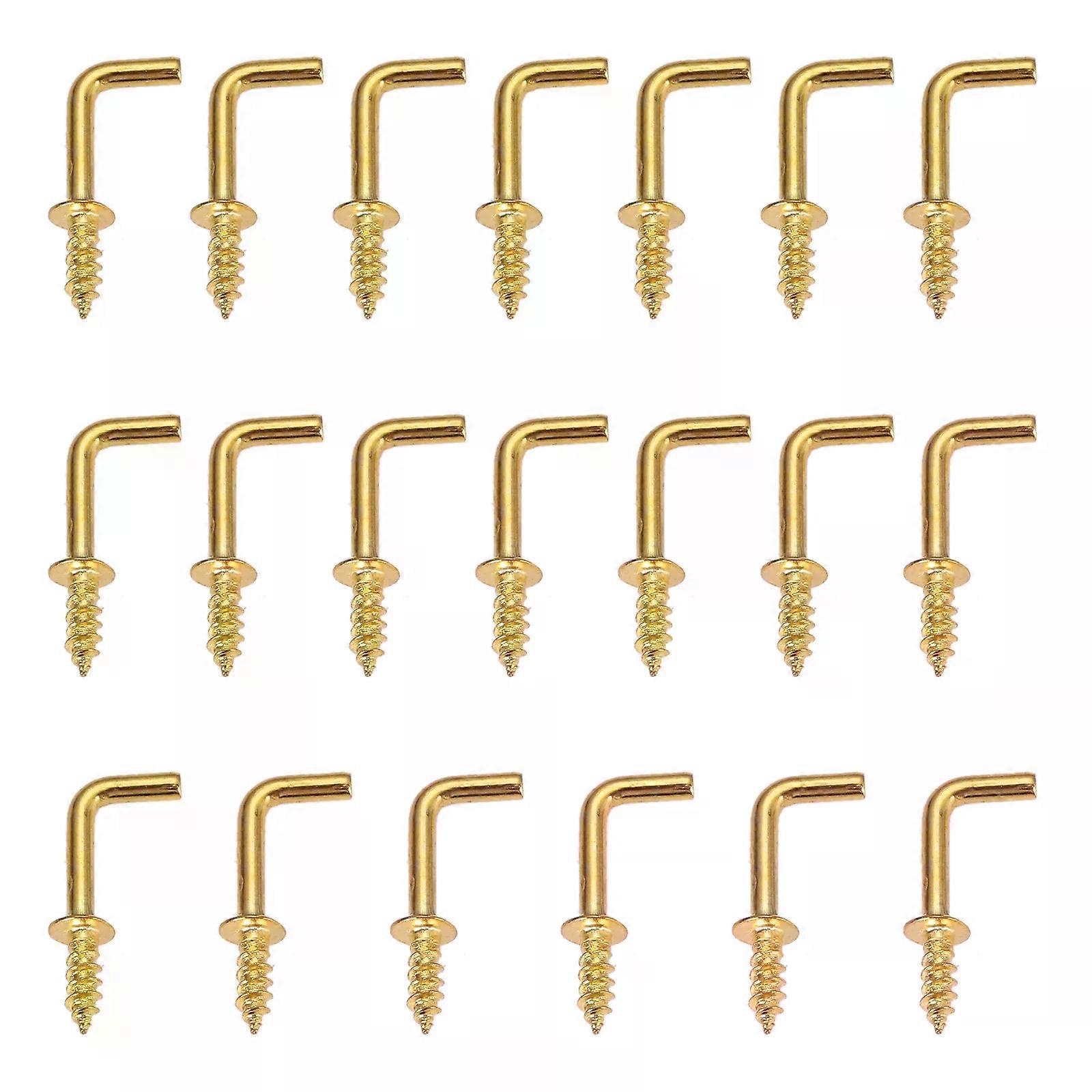 20 Pcs L Shaped Screw Dresser Cup Hooks Hanging Hangers Hooks Brass Plated DIY Home Furniture Fixing Fastener Tool 1/2 5/8 inch