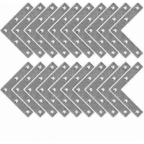 Durable and Sturdy: The bracket is constructed of high quality stainless steel, durable, solid, sturdy, waterproof and rustproof. Hand polished stainless steel finish, no worry about daily scratches, corrosion and tarnishing. L-Shaped Flat Brace: Specially designed with L shape, an important fastener to keep furniture firm. Ideal tool for connecting furniture joint corner panel. Simple and practical design, sturdy and stable. Powerful Support: Finely brushed metal material ensures excellent performance for heavy loads. Use the L-shaped corner brackets at home, in the factory, and in the office to reinforce corners with reliable support. Wide Application: Works great for reinforcing or repairing tables, cabinets, chairs, windows, wardrobes, shelves, or any other home furniture where a right-angle flat fastener can be applied. Easy to Install: The screw holes are recessed so that the screws are flush with the surface of the brackets. Super handy for general DIY jobs around the house. L-shaped steel flat corner brace for reinforcing right angle corner joints. Product Description Size:80x80 mm L-shaped flat corner braces - Made of high quality stainless steel, hard and durable, corrosion and rust resistant. - Specially designed with L shape, simple and practical design to keep furniture firm. - Mounting hole diameter: 3.2 mm; Size: 80 * 80 mm. - Ideal tool for connecting furniture joint corner panel. Build, assemble, or repair many types of furniture. - Works great for common fixing, shelf support for desk edge. Specifications: Material: Stainless Steel Bracket Size: 80x80 mm Installation Method: Screw fixing Hole Quantity: 5 holes Color: Silver Package Includes: 20 Pcs * Flat Corner Brace
