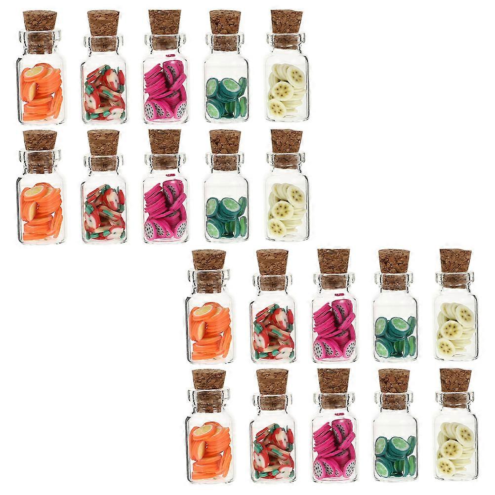 20pcs Mini Fruit Jar Decor Glass Dollhouse Accessories Kitchen Display Wear Resistant Miniature House Ornament Collection Including Banana Lemon Tea