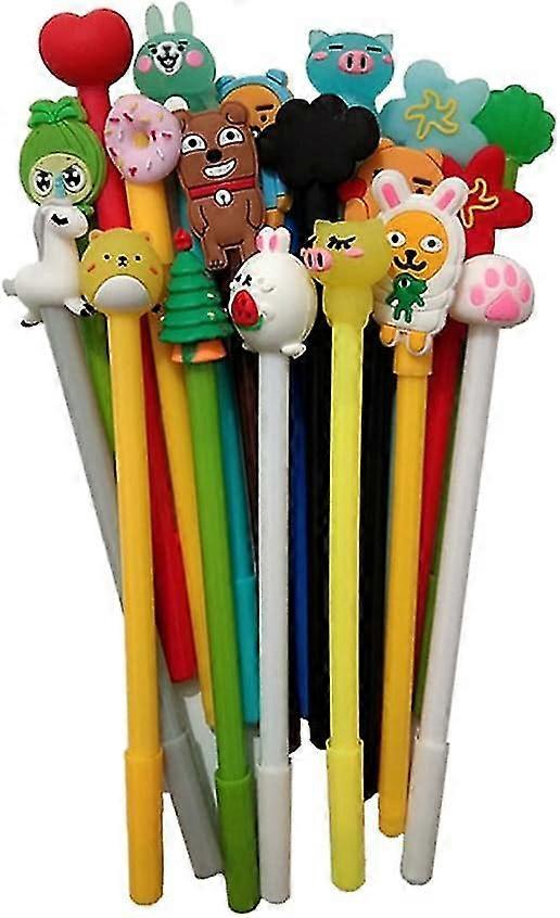20pcs Kawaii Cartoon Pens, 0.38mm, Random Colors, Zipper Pen Bag, Girls & Women Stationery