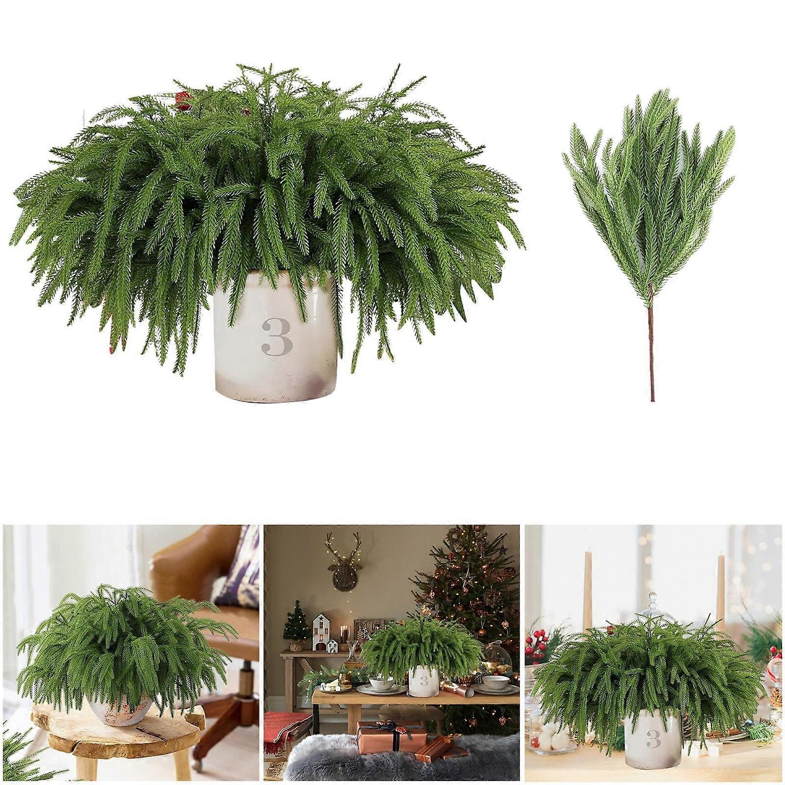 20pcs Christmas Norfolk Pine Branches, Artificial Greenery for DIY Wreaths, Garlands, Xmas Decor, Compatible with Norfolk Pine Crafts