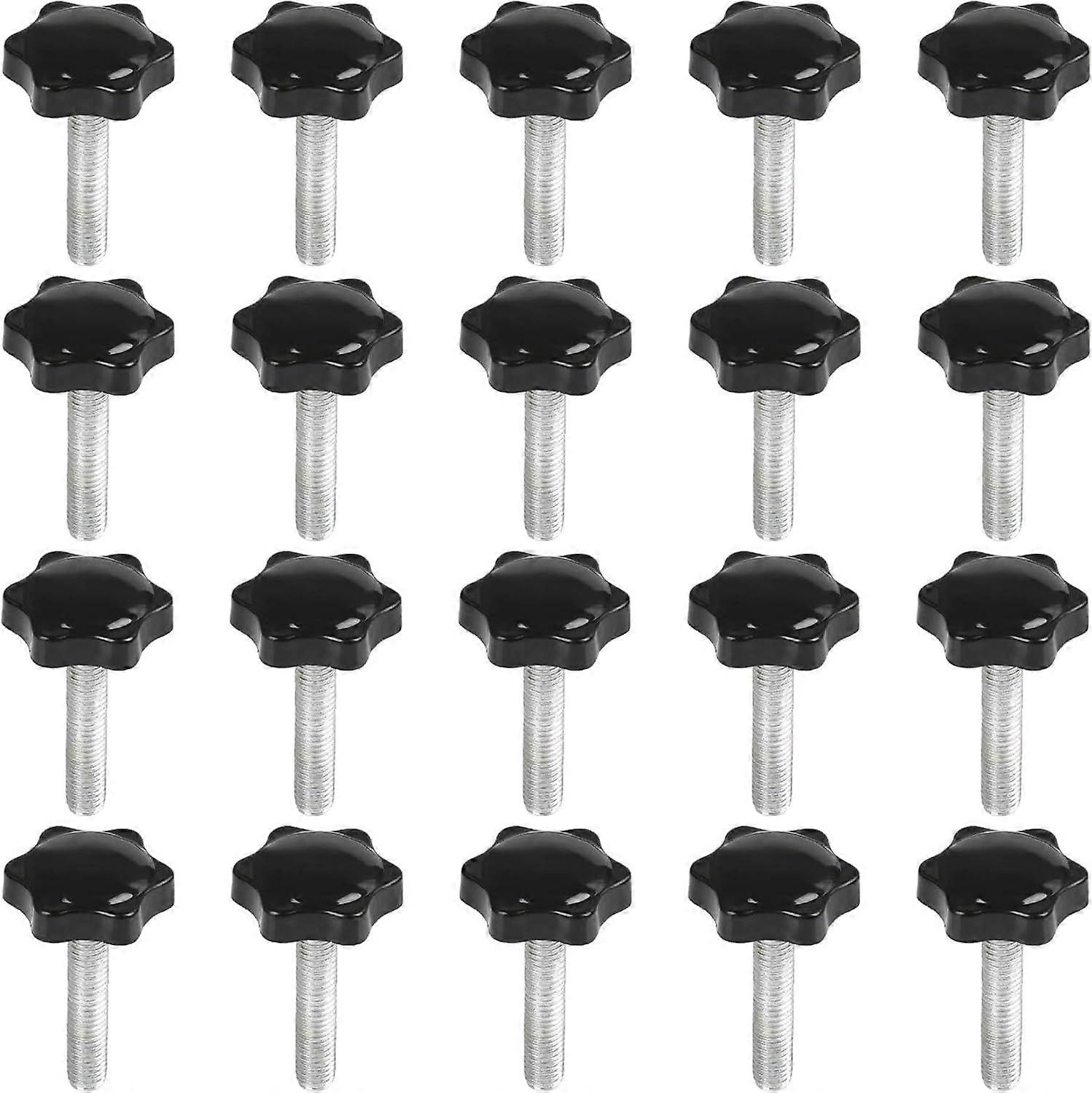 20 Pcs M8 x 40mm Thread Clamping Knob Black Plastic Star Shaped Knob Screw On