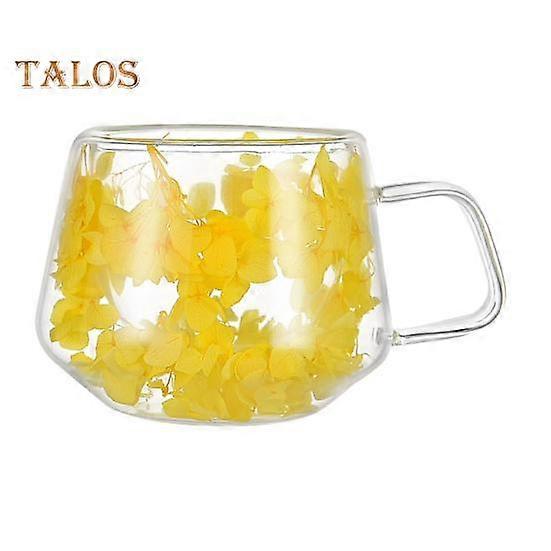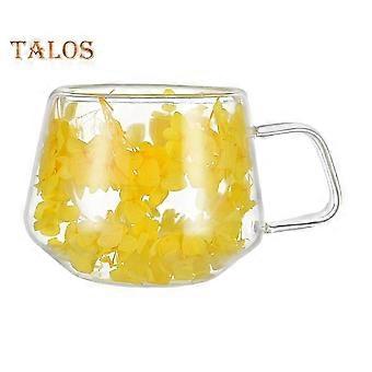 200ML Clear Glass Mug Double Wall Insulated Cup with Handle Aesthetic Dehydrated Flower Design Heat Preserving Tumbler for Coffee Tea