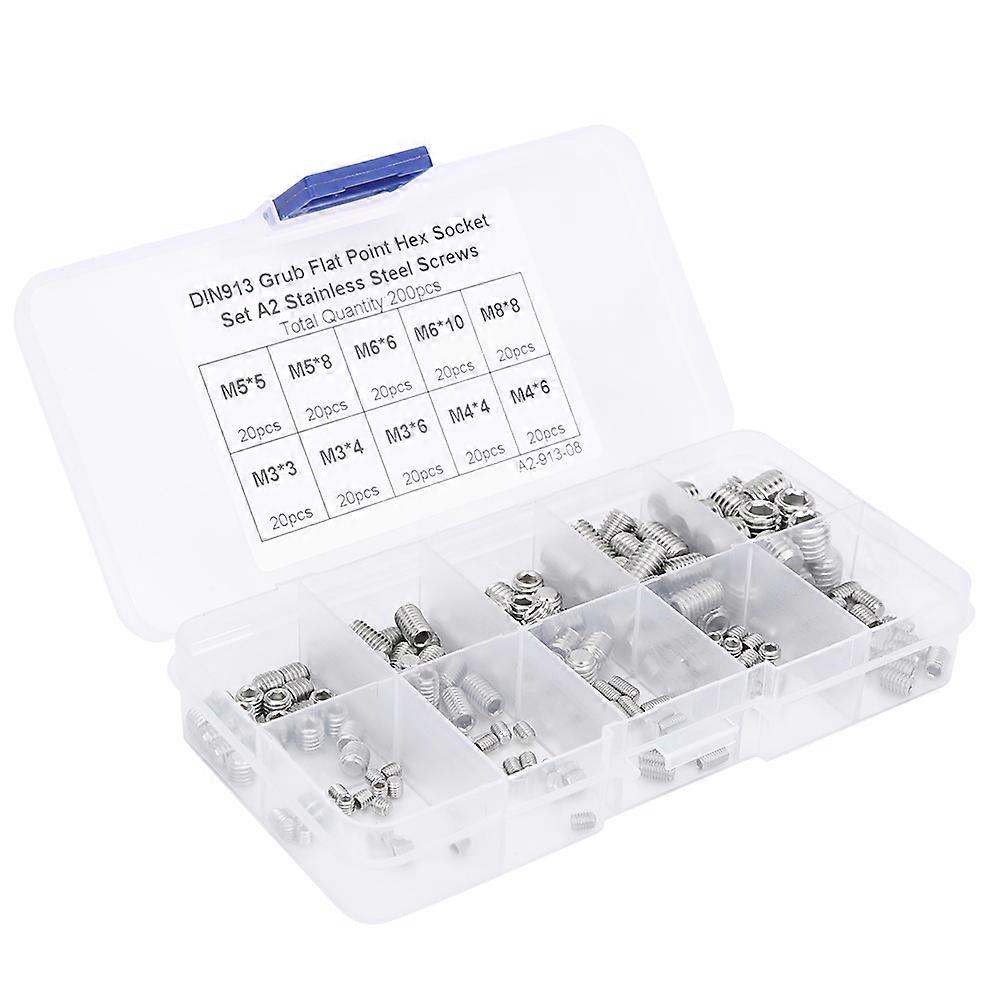 200pcs Stainless Steel Flat Point Hex Socket Grub Screw for Precise Instrument M3/M4/M5/M6/M8
