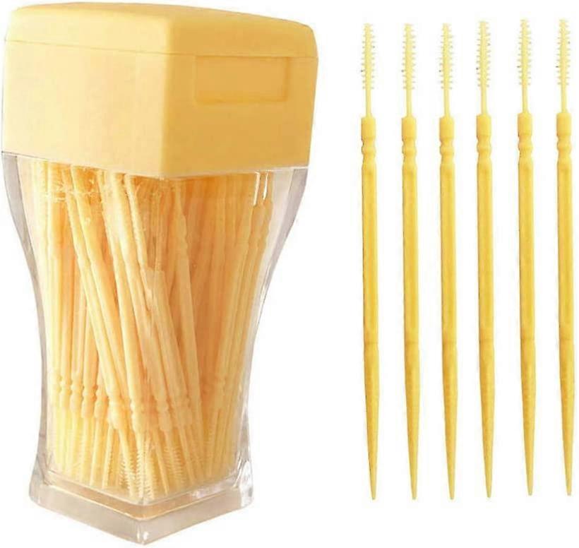 200pcs Interdental Brush Toothpicks Double Head Plastic Safe Tooth Cleaning Tool for Adults Women Men(Light Yellow)