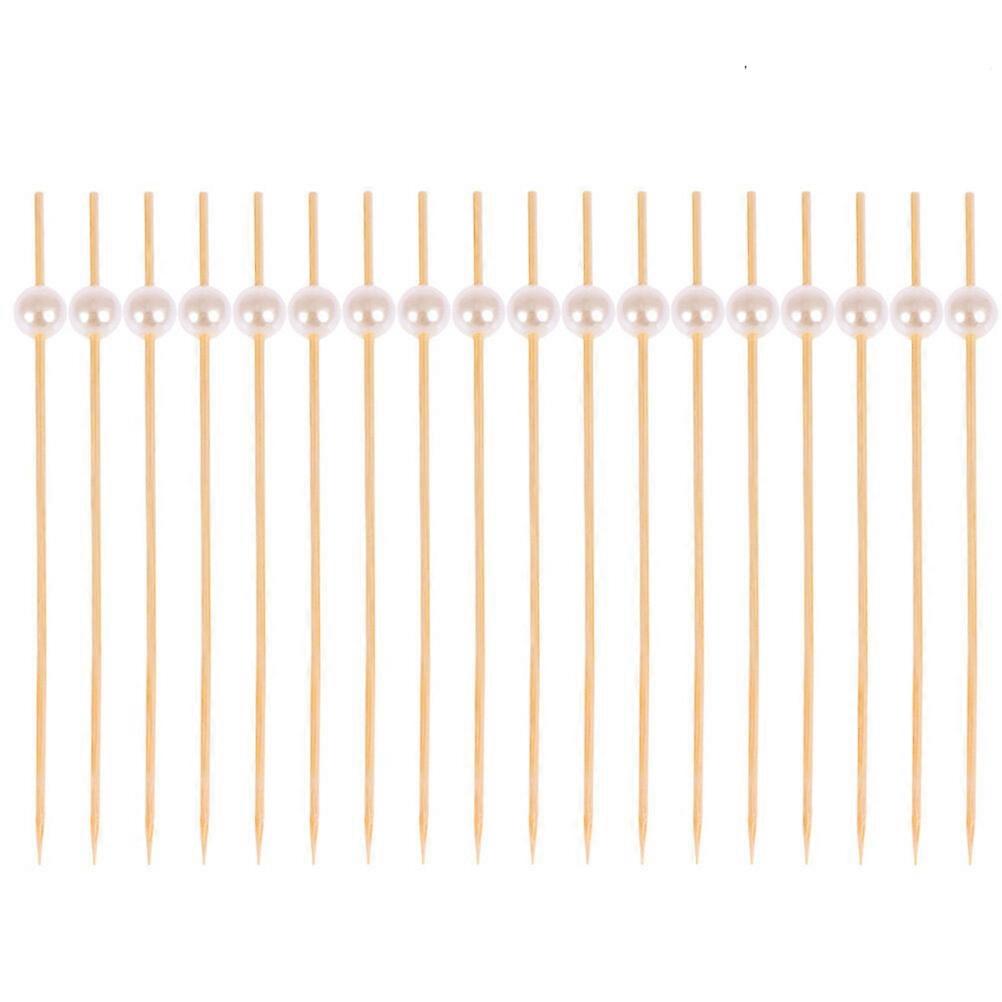 200pcs Pearl Decor Cocktail Sticks Fruit Stick Bamboo Appetizer Toothpicks for Drink Desserts