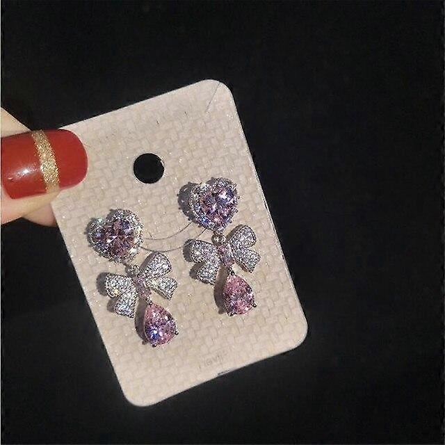 2020 New Arrival Top Sell Luxury Sweet Cute Jewelry 925 Sterling Silver Heart Shape Sapphire Women Wedding Bow Earring