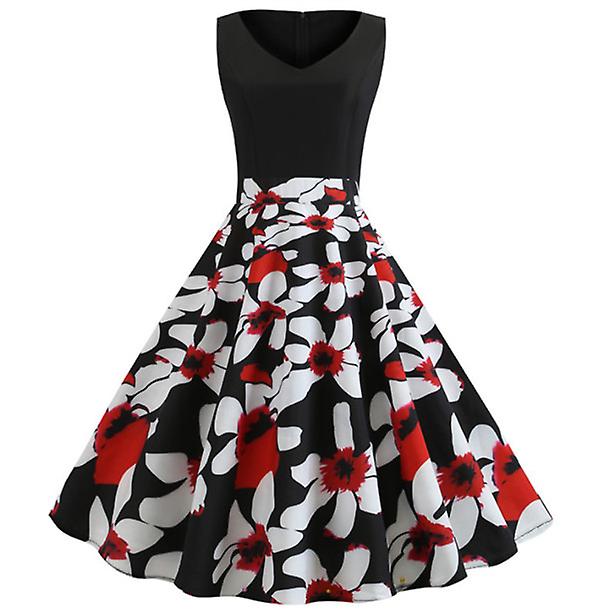2022 Fashion Outlet Women's V-neck Sleeveless Vintage Print Swing Skirt Dress
