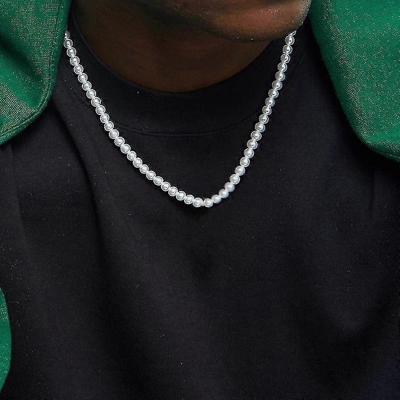 2022 New Trendy Imitation Pearl Necklace Men Temperament Simple Handma