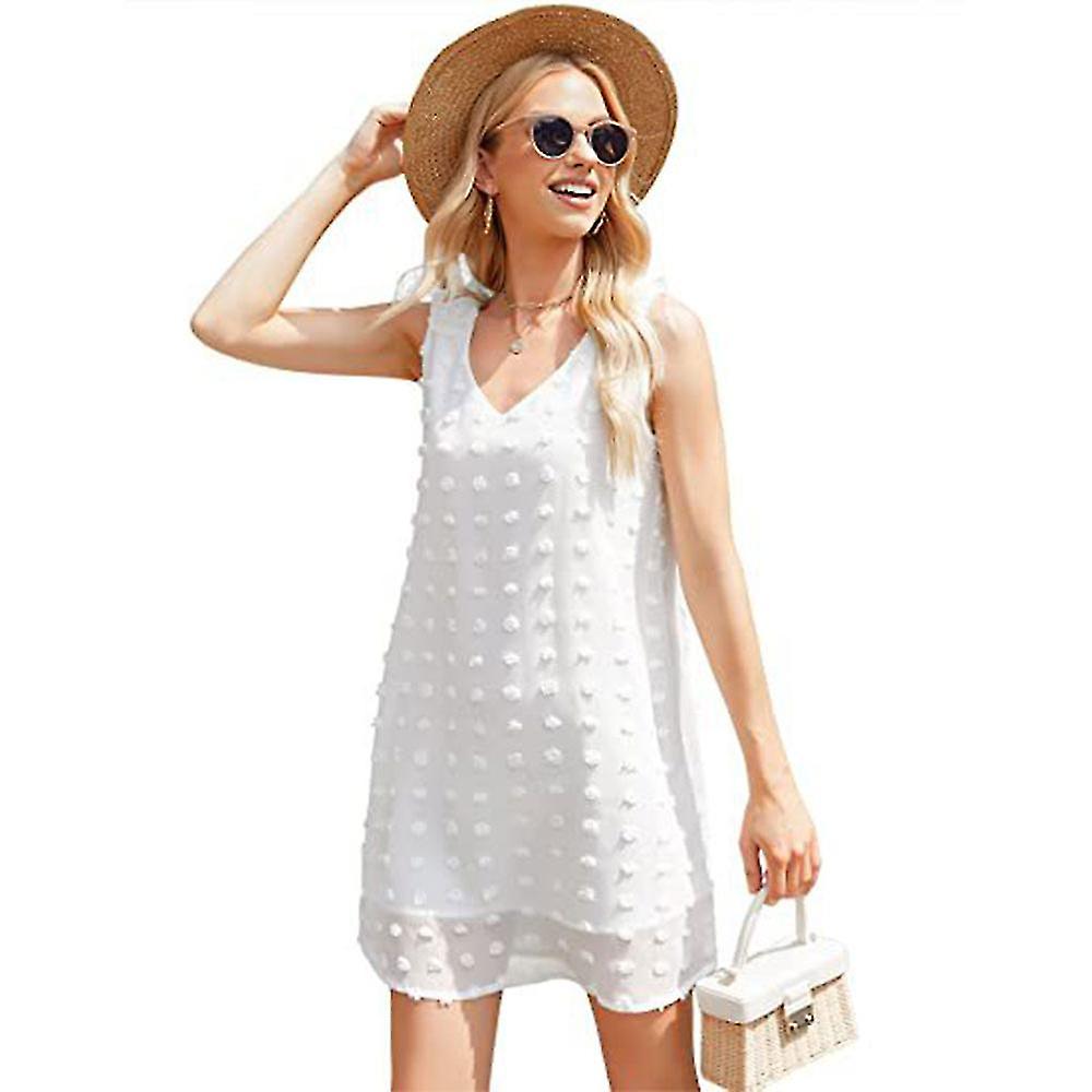 2022 New Ruffle Low Neck Sleeveless Chiffon Short Dress White