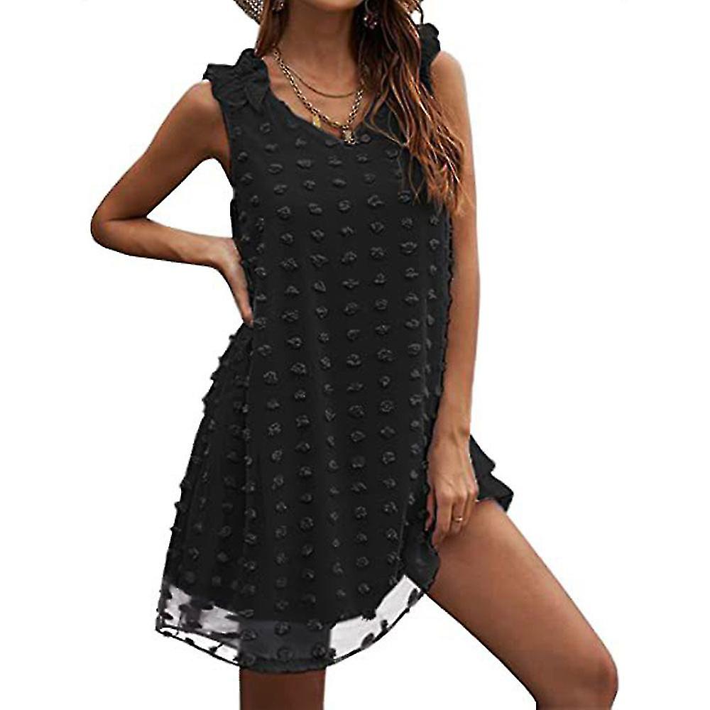 2022 New Ruffle Low Neck Sleeveless Chiffon Short Dress Black