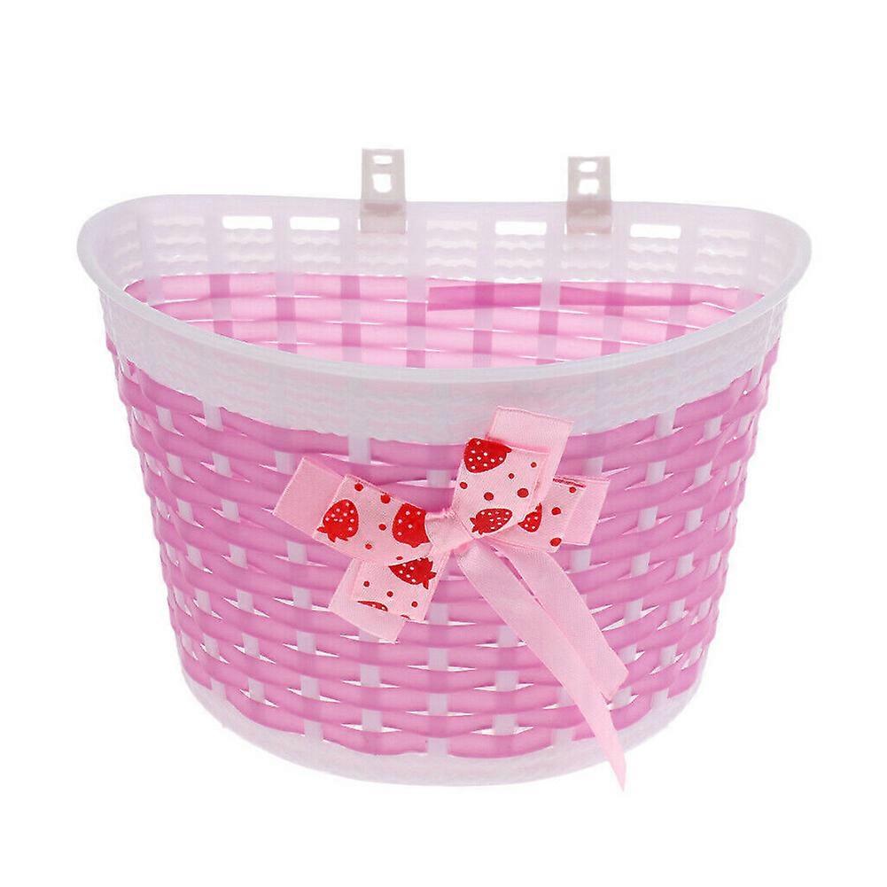 2023 New Bicycle Basket Children Bike Plastic Knitted Bow Knot Front Handmade Bag