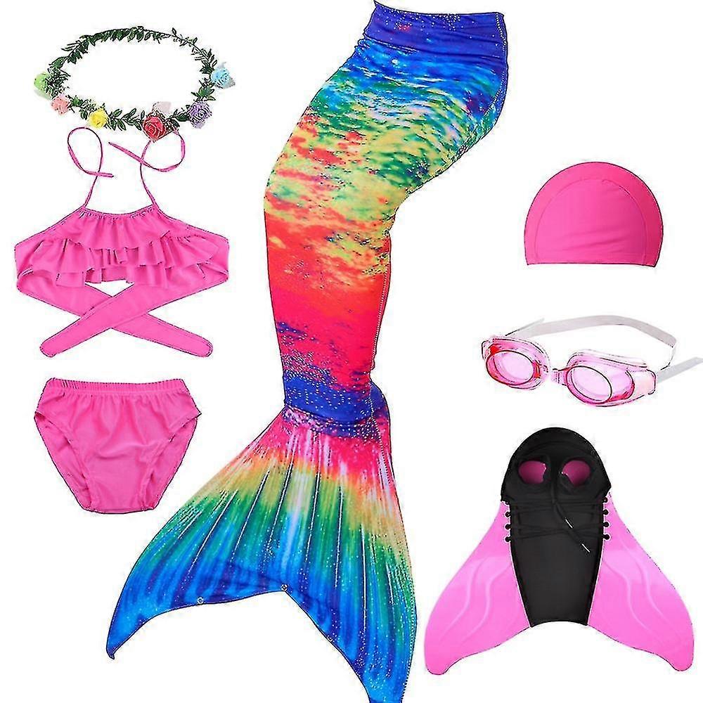 2023 Children's and Girls Swimming Mermaid Tail Role Play Pink Blue Children's Halloween Party Gift Swimwear Can Add Single Fin -3 Piece Set