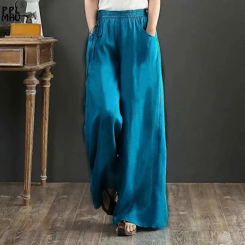 2023 Summer Elastic Waist Cotton Linen Pant Women 4xl Plus Size Trousers Casual Baggy Pantalones Mom's Vintage Wide Leg Pants