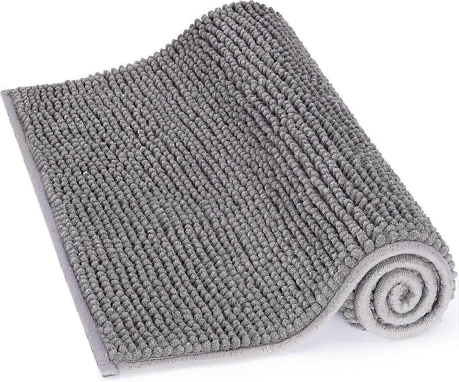 2024 Non-Slip Absorbent Bath Mat 80Cm X 50Cm Chenille Microfiber Shower Mat for Bathroom, Gray