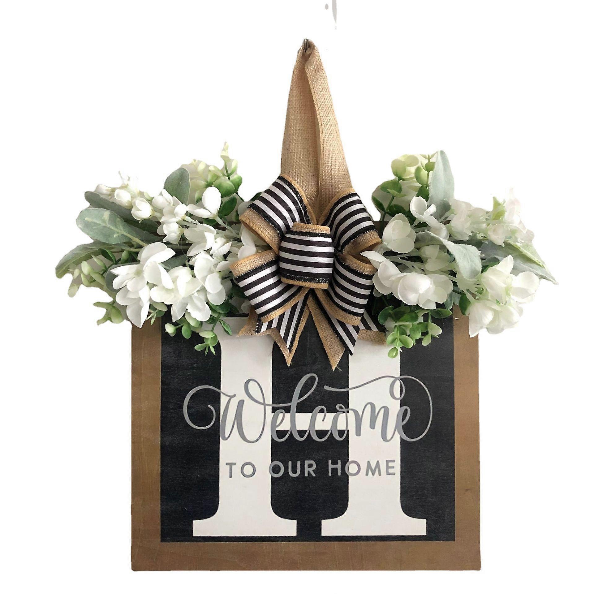2024 New Last Name Year Round Front Door Spring Summer Wreath Front Door 26 Letter Farmhouse Welcome Sign with Wreaths Bow Outside Hanger Decor Home G