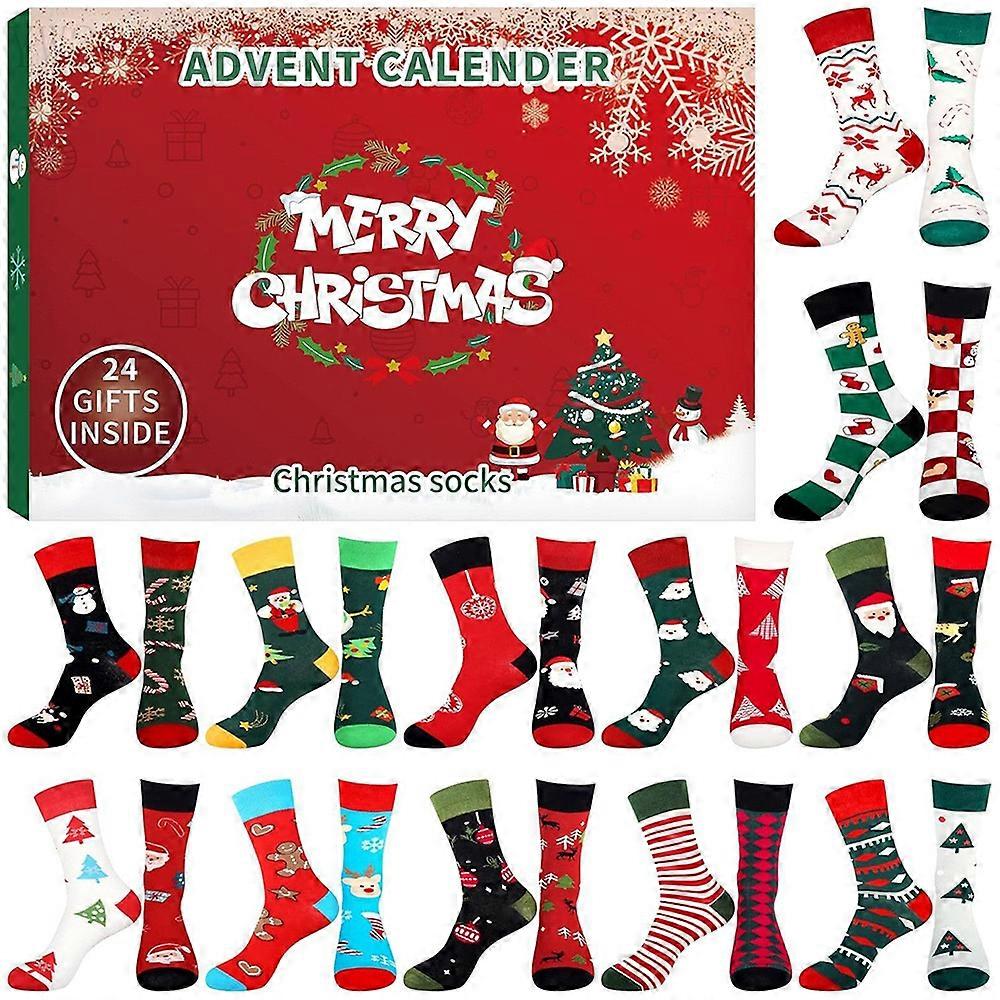 2024 Christmas Socks Advent Calendar, 24 Days Christmas Countdown Socks Calendar, Christmas Sock Set for Adult