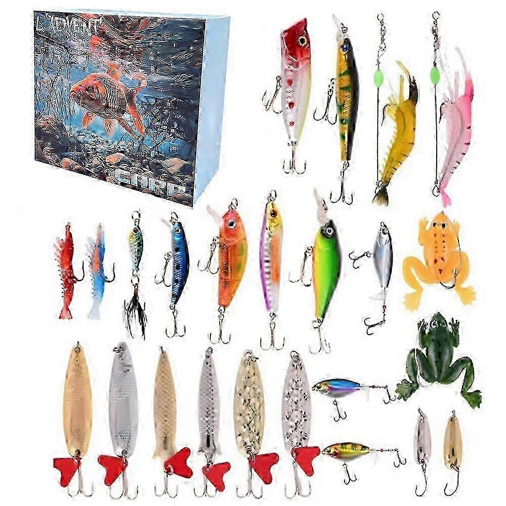 2024 Christmas Fishing Advent Calendar Countdown Fishing Lure Calendar 24 Days Fishing Lures Set Tackle Box Creative Xmas Gifts