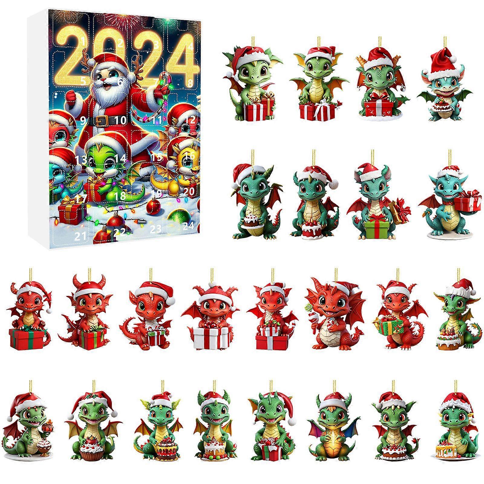 2024 Festival Vacation Advent Calendar 24 Day Christmas Calendar Pendant With Santa Hats 2D Xmas Tree Ornaments For Christmas Party PUW0747