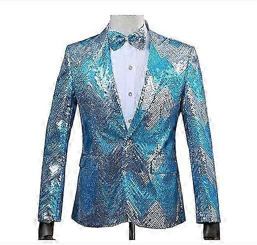 2025 Men Gradient Color Sequin Suit Jacket Single Button Notched Lapel Paillette Coat With Bowtie