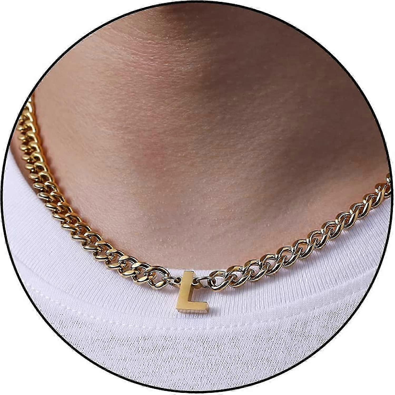 2025 Initial A-z Cuban Link Chain Necklace For Boys Men Women Letter Pendant Stainless Steel 6.5mm 18+2 Inches Jewelry Gift