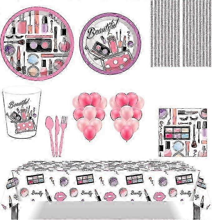 2025 SPA Makeup Party Supplies, Spa Makeup Disposable Tableware with SPA Makeup Plates Cups Straws Napkins Balloons for Birthday Girls Party Spa Party