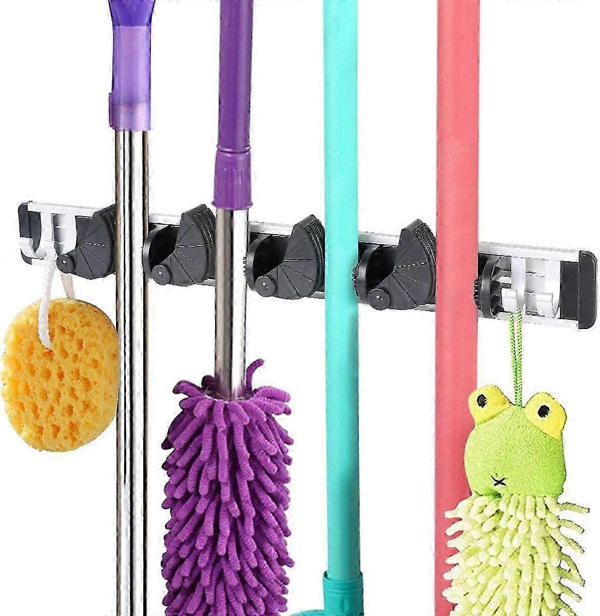 2025 New Multifunctional Wall-Mounted Broom Holder, Mop Hook Storage Holder with 4 Mobile Slots 4 Mobile Hooks, Wall-Mounted Tool Storage Space Saving
