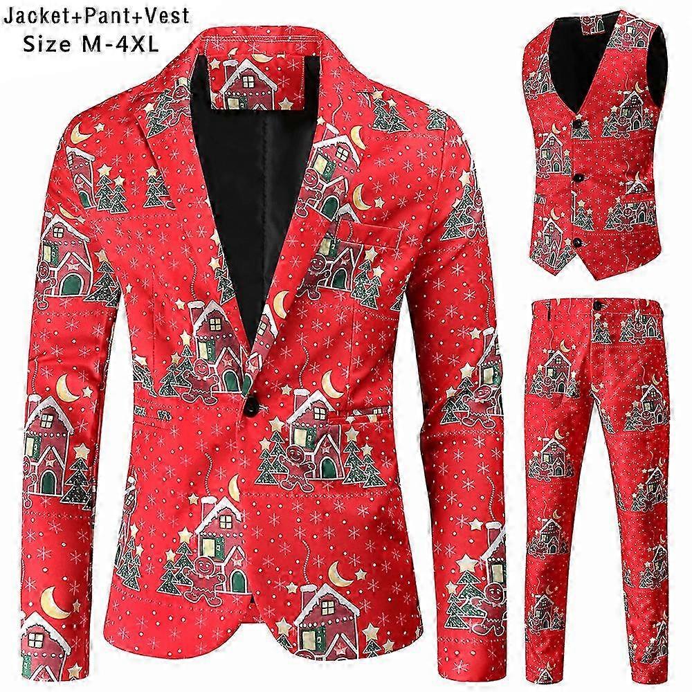 2025 New Men's Casual Suit 3-piece Christmas 3D Printed Tuxedo Suit Set Men's New Year Dress