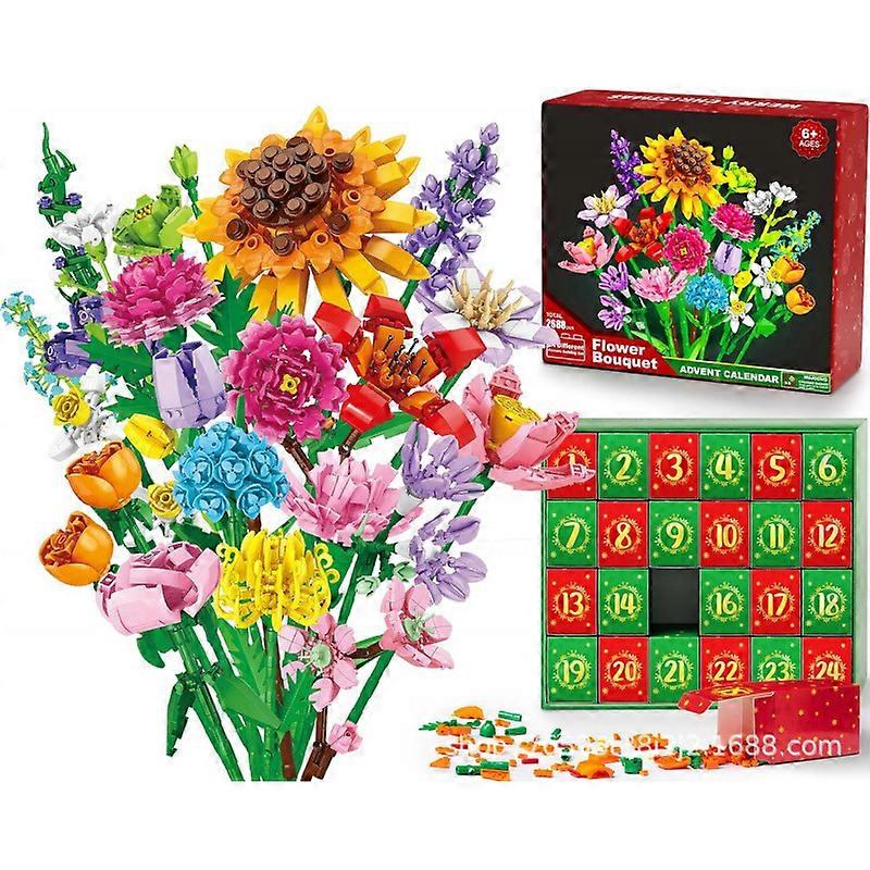 2025 New Bouquet Building Block Christmas Advent Calendar, Christmas 24 Days Sunflower Bouquet Countdown Calendar