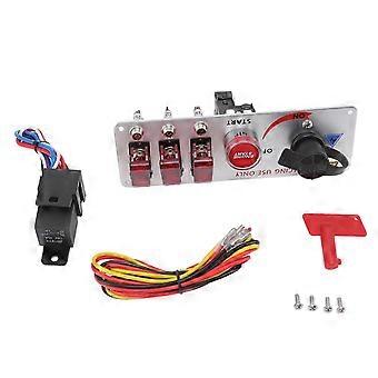 2025 5in1 12V LED Toggle Ignition Switch Panel with Engine Start Push Button for Racing Car RV Truck Red