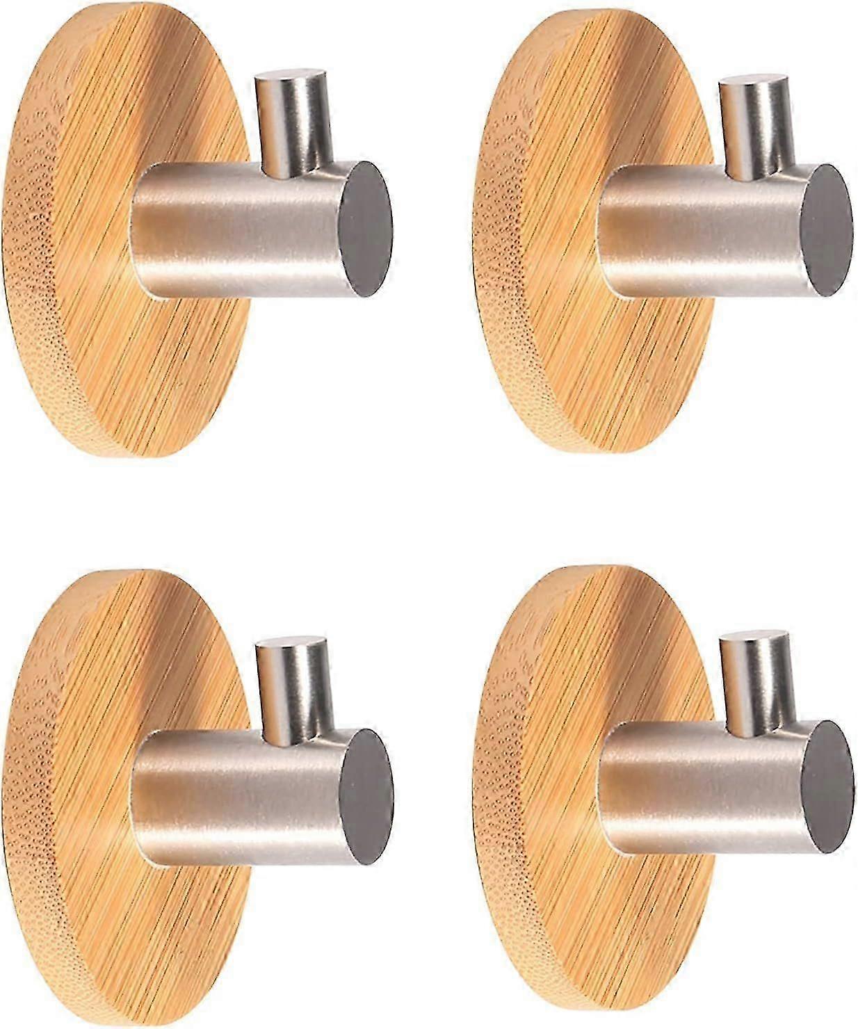 2025 Latest Model Adhesive Hook, 4 Pieces Adhesive Door Hook, 304 Stainless Steel and Bamboo Robe