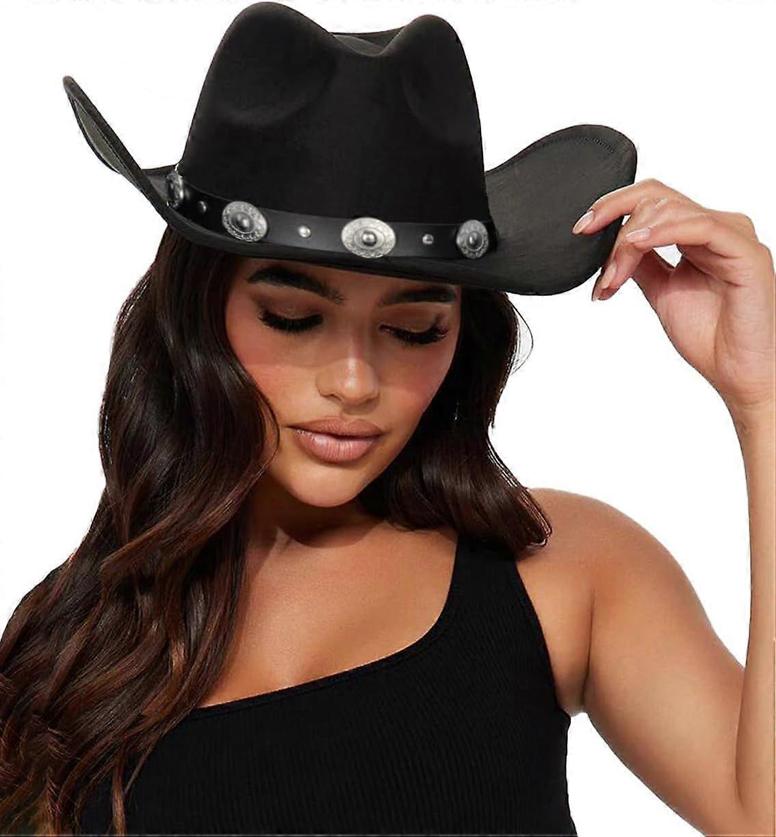 2025 Latest Model Womens Western Cowboy Hats Studded Pinched Western Cowgirl Hats Wide Bri
